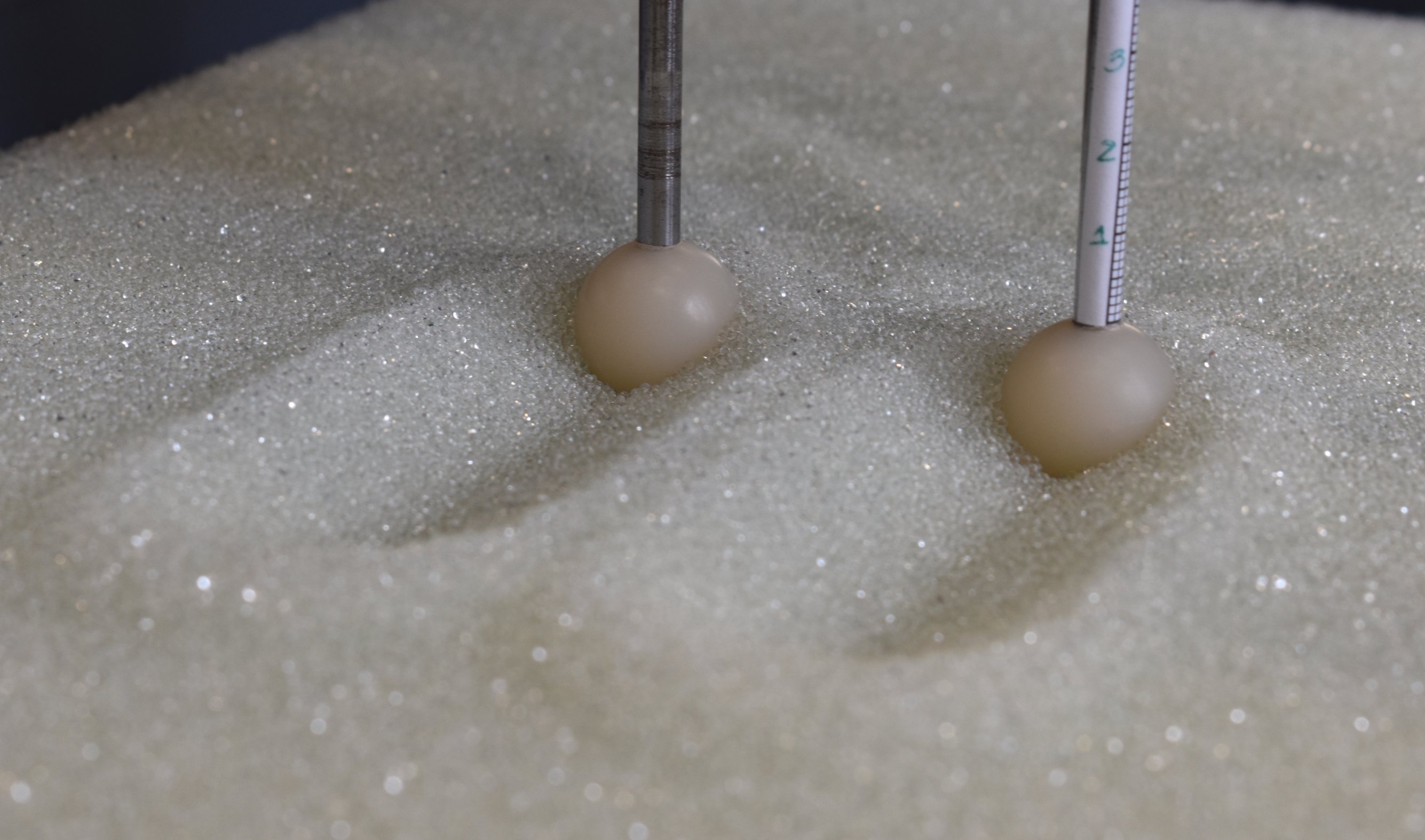 The soil on our planet is an extremely heterogeneous material, made up of particles that vary greatly in size, shape and composition. This collection of particles can be described as granular, whether in dry or wet conditions. When the climate changes, soils can exhibit critical behaviours such as landslides, mudslides and avalanches. Soils are also unique eco-systems for the many living organisms that burrow beneath the surface and move through them. Preventing the risks associated with geophysical events and preserving soils requires an in-depth understanding of the behaviour of granular media. Our work focuses on the mechanics of these granular materials, which are made up of an assembly of solid grains, and on the effect of various factors influencing their macroscopic responses, such as the presence of fluids, capillary bridges or fibres in the interstices between the grains. These materials are used as model systems to study soil behaviour in the laboratory. In practice, we characterise the macroscopic response of these materials using model experiments and interpret our observations using concepts from the field of soft matter. This approach is essential for developing new strategies for reinforcing soils with fibres in order to combat erosion, as well as for gaining a deeper understanding of the interactions between organisms living beneath the surface and soil properties. To this end, we are developing bio-inspired robots and studying their behaviour in granular materials, which represents a major challenge in robotics.